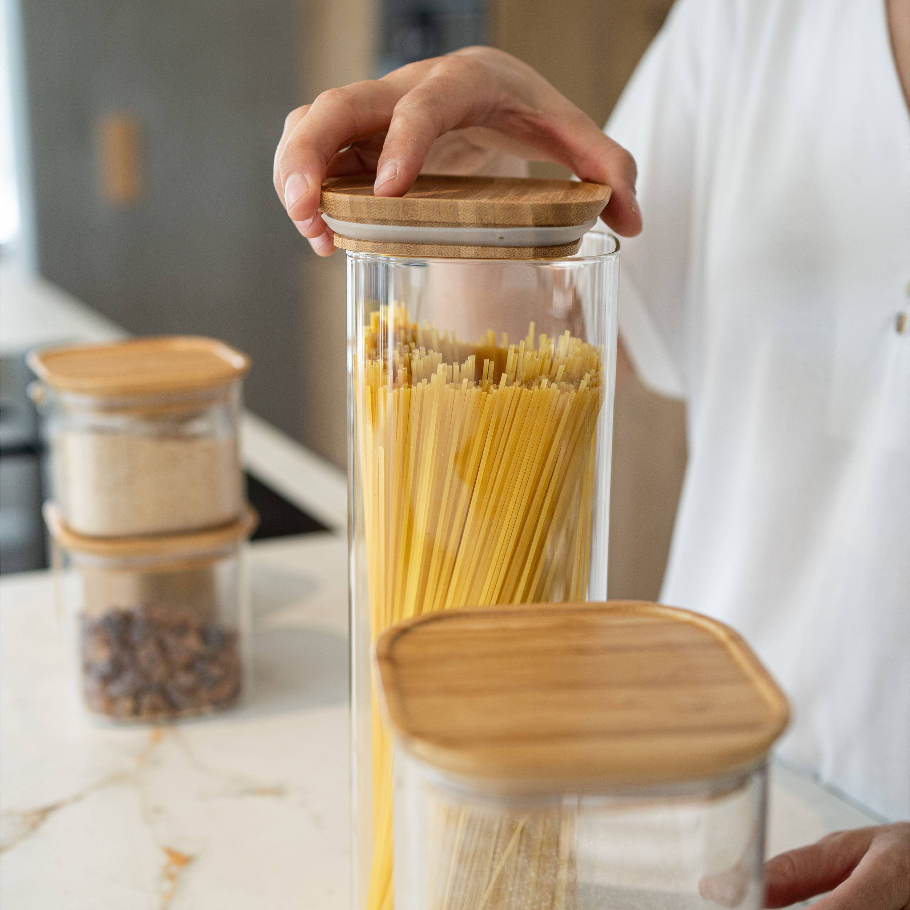 Praktisch und dekorativ zugleich, helfen dir die Vorratsdosen aus Glas, deine Lebensmittel zu sortieren und für alles den richtigen Platz zu finden.